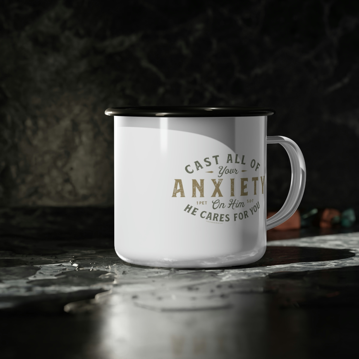 “Cast All of Your Anxiety” Enamel Camp Cup