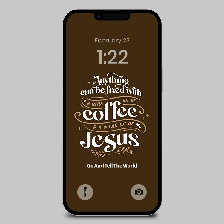 Brighten your day with this fun and faith-filled phone wallpaper! “Anything can be fixed with a little bit of coffee and a whole lot of Jesus” is a lighthearted reminder that while coffee might fuel your mornings, true strength and endurance come through Christ. Every time you unlock your phone, let this cheerful design encourage you to rely on Jesus for the energy to face life’s challenges. Share it with others who know the perfect pairing of caffeine and faith!