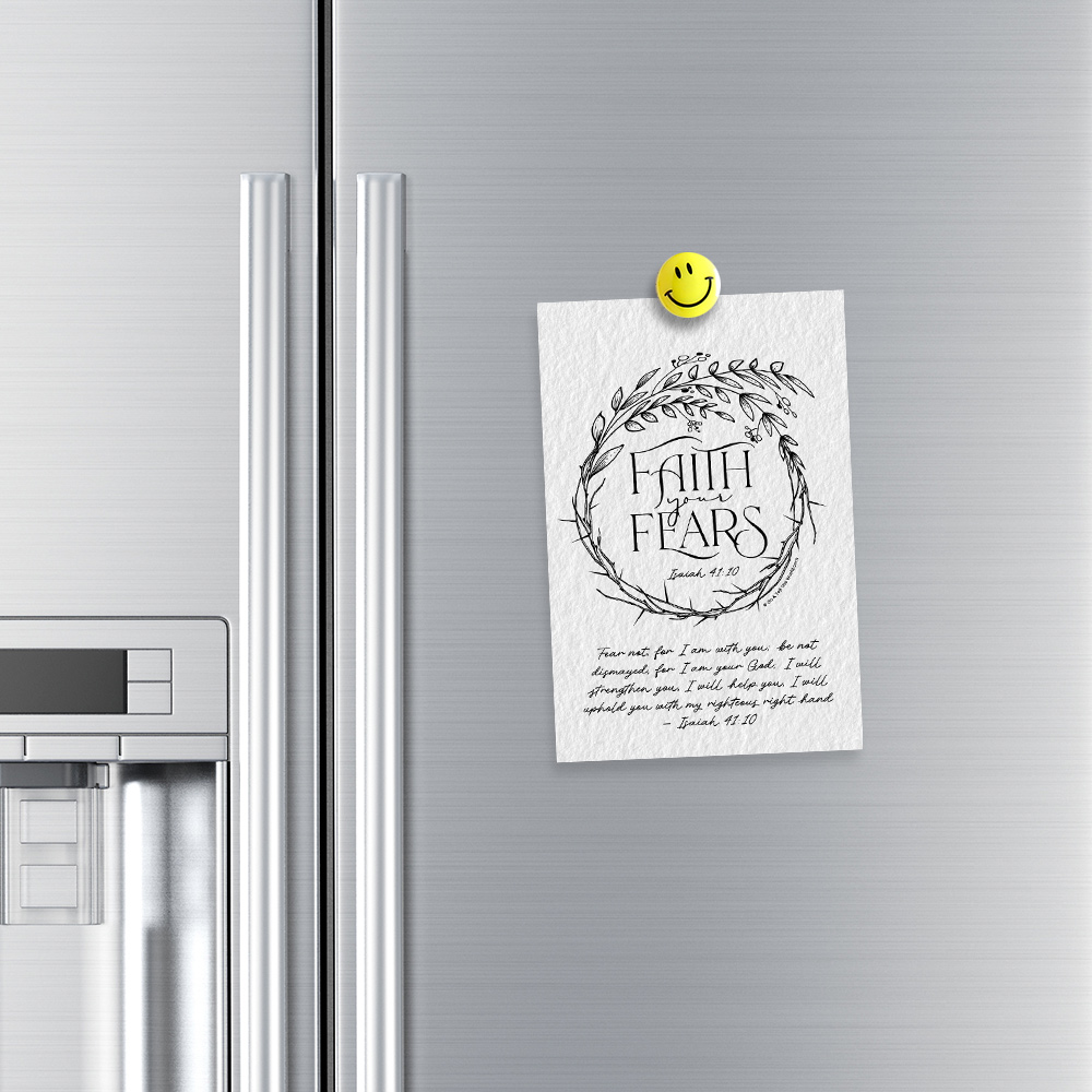 Encourage others with this “Faith Your Fears” notecard based on Isaiah 41:10. It’s the perfect way to remind yourself and others that God is in control of all things, and that he will strengthen you and hold you up.