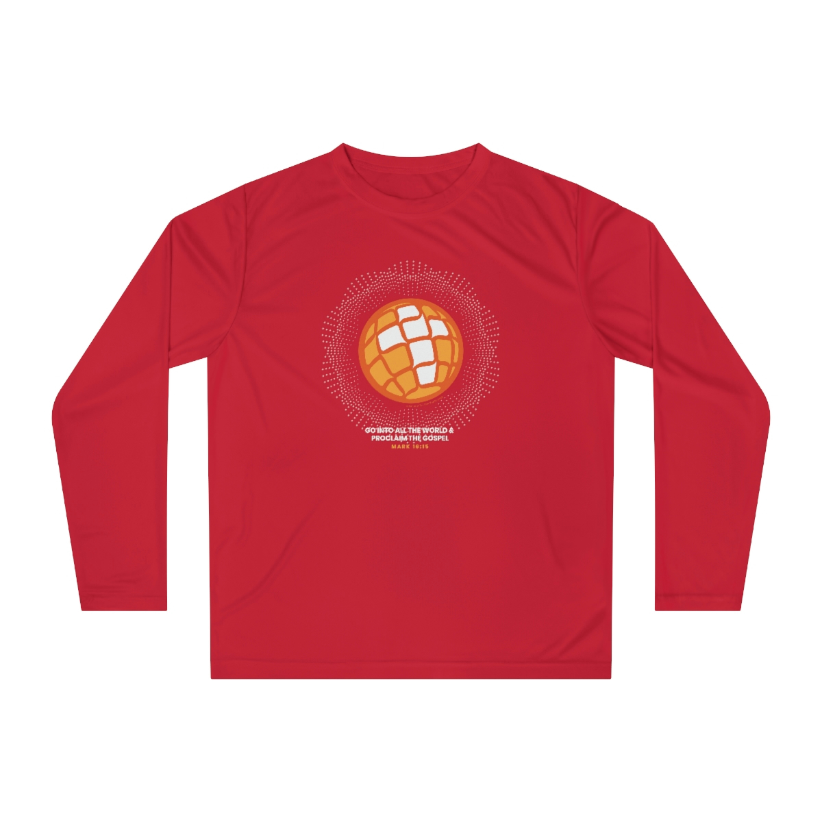 Created for action, this custom sports shirt is made with 100% polyester interlock that keeps you dry and comfy when peak performance is the only way. This lightweight, long-sleeve shirt offers 40+ UV protection and features cationic dyes for unparalleled brightness and color fastness.