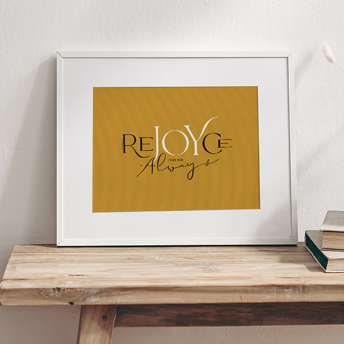 Encourage others with this “Rejoice Wallpaper” enlargeable horizontal artwork based on 1 Thessalonians 5:16. It’s the perfect way to remind yourself and others to find Joy at ALL Times.